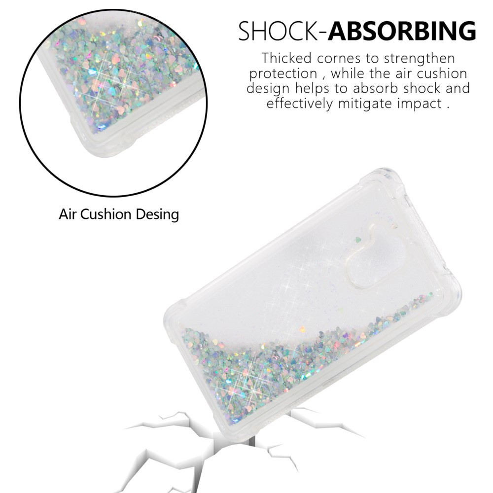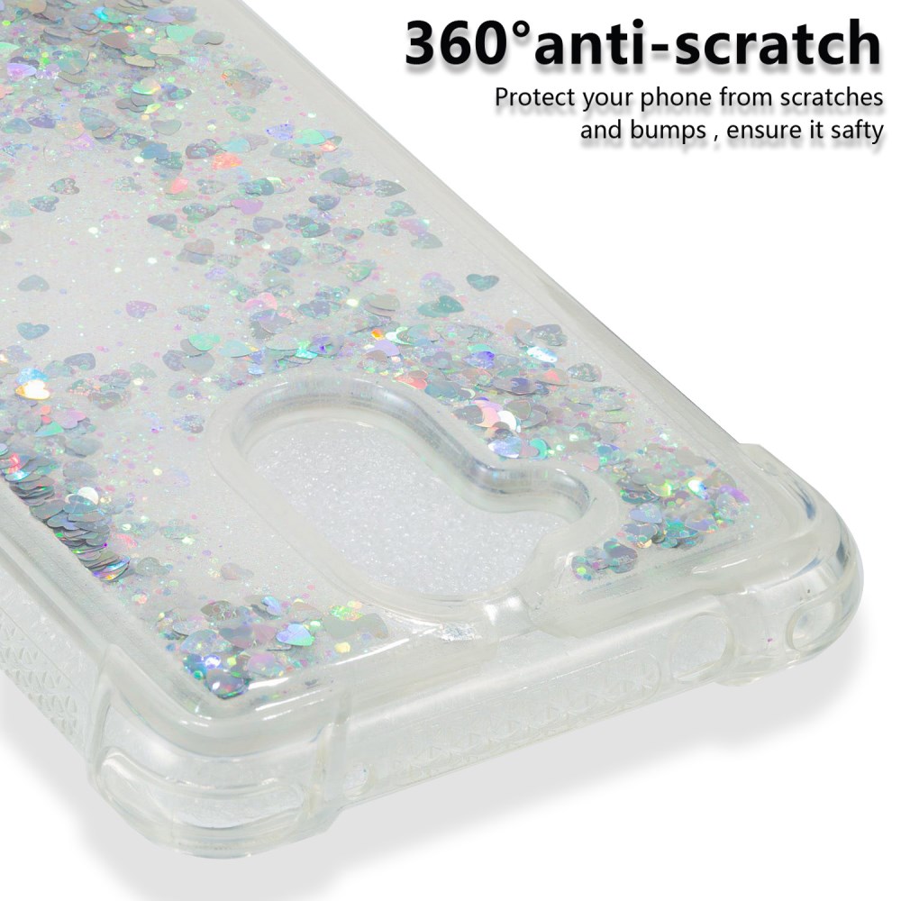 - Odporen, lahek in praktično neuničljiv etui iz TPU upogljivega gela s tekočino, kjer se pretakajo bleščice.