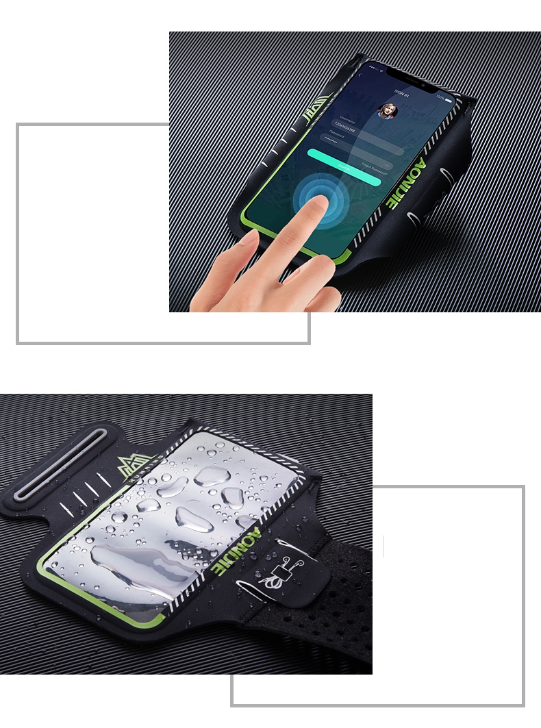 - Z občutljivim zaslonom na dotik lahko upravljate telefon, ne da bi ga odstranili iz športne torbice.