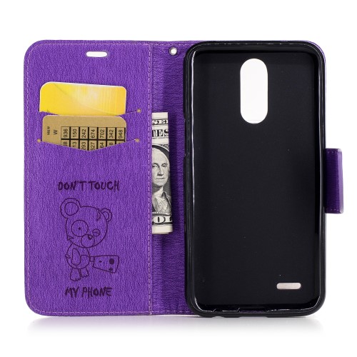 BEARS DON'T TOUCH MY PHONE VIJOLIČEN - LG K10 (2017)LG3 V 1! Usnjen etui ima znotraj ohišje iz upogljivega TPU gela, kamor vstaviš telefon. Uporabljaš ga lahko na več načinov: