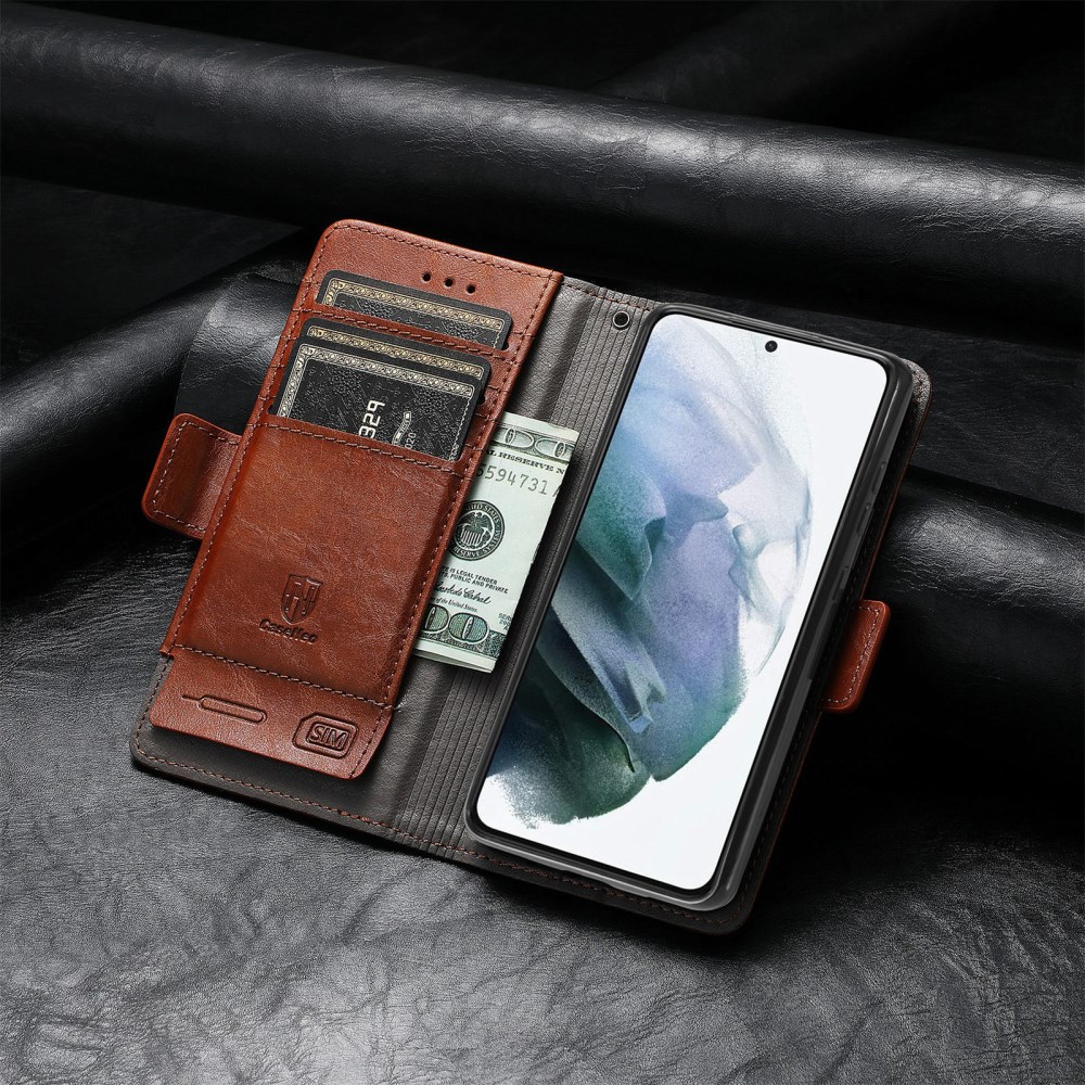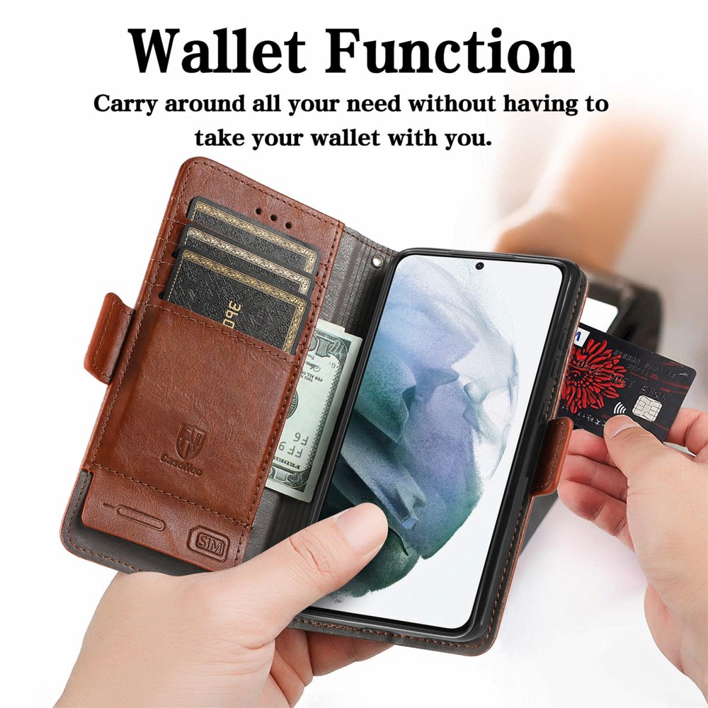 3 V 1! Usnjen etui CASENEO ima znotraj ohišje iz upogljivega TPU gela, kamor vstaviš telefon. Uporabljaš ga lahko na več načinov: