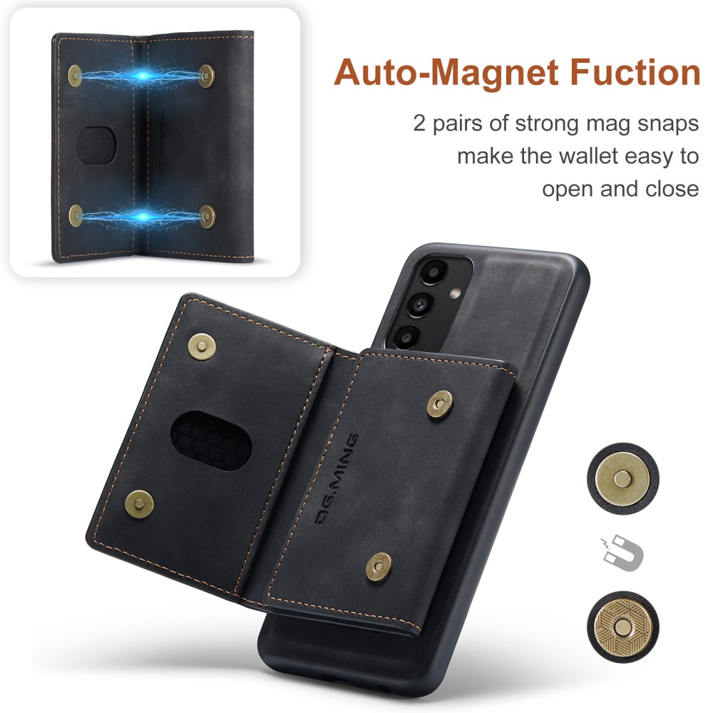 DG MING M2 ŽEPEK ČRN OVITEK ZA SAMSUNG GALAXY A13 Ovitek DG MING M2 je sestavljen iz visokokakovostnega umetnega usnja zadaj in kombinacije trde plastike ter TPU gume na robovih.- Uspešno ščiti vaš telefon pred vsakodnevnimi poškodbami in udarci. - Robovi so dodatno ojačani, kar nudi dodatno zaščito telefona pred poškodbami. - Stranski (funkcijski) gumbi so zaprti in so zato odlična zaščita pred prahom in umazanijo. - Dvignjen rob okrog kamere, da je le-ta zaščitena, ko odložimo telefon na mizo. - Na ovitek je z močnim magnetom pritrjena denarnica, kamor v 2 reži lahko shranimo denar in v 6 rež kartice. - Magnetni gumbi skrbijo, da je vsebina denarnice varno shranjena. - Ovitek in denarnico lahko uporabljamo ločeno. - Denarnica se lahko pretvori v stojalo za lažje gledanje videa.Izognite se dragim popravilom in zaščitite vaš telefon! 101243210A 101243210A https://www.etuizamobi.si/media/catalog/product/cache/1/image/9df78eab33525d08d6e5fb8d27136e95/1/0/101243210A_1000x1000_1.jpg.jpg
