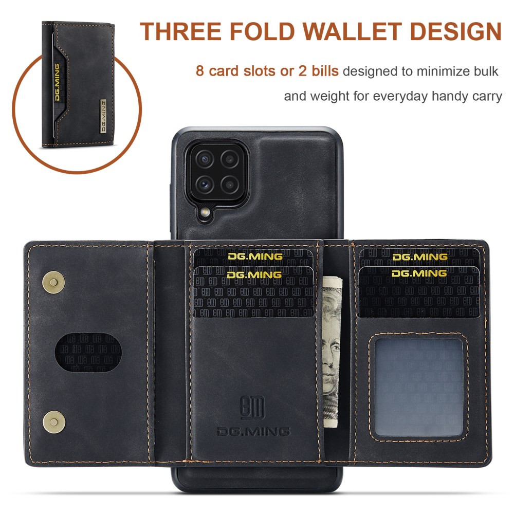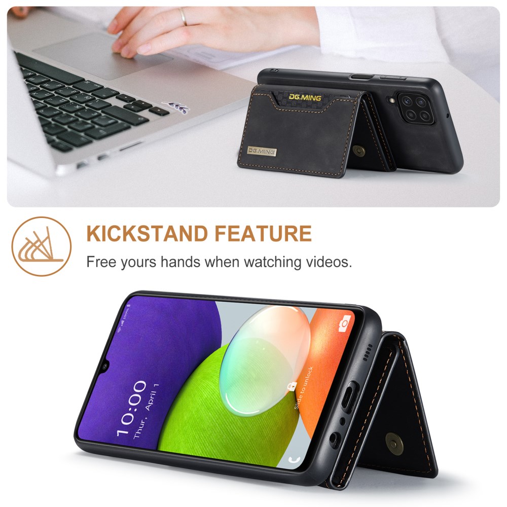 DG MING M2 ŽEPEK ČRN OVITEK ZA SAMSUNG GALAXY A22 Ovitek DG MING M2 je sestavljen iz visokokakovostnega umetnega usnja zadaj in kombinacije trde plastike ter TPU gume na robovih.- Uspešno ščiti vaš telefon pred vsakodnevnimi poškodbami in udarci. - Robovi so dodatno ojačani, kar nudi dodatno zaščito telefona pred poškodbami. - Stranski (funkcijski) gumbi so zaprti in so zato odlična zaščita pred prahom in umazanijo. - Dvignjen rob okrog kamere, da je le-ta zaščitena, ko odložimo telefon na mizo. - Omogoča wireless brezžično polnjenje. Ovitka ni potrebno sneti s telefona. - Na ovitek je z močnim magnetom pritrjena denarnica, kamor v 2 reži lahko shranimo denar in v 6 rež kartice. - Magnetni gumbi skrbijo, da je vsebina denarnice varno shranjena. - Ovitek in denarnico lahko uporabljamo ločeno. - Denarnica se lahko pretvori v stojalo za lažje gledanje videa.Izognite se dragim popravilom in zaščitite vaš telefon! 101238934A 101238934A https://www.etuizamobi.si/media/catalog/product/cache/1/image/9df78eab33525d08d6e5fb8d27136e95/1/0/101238934A_1000x1000_1.jpg