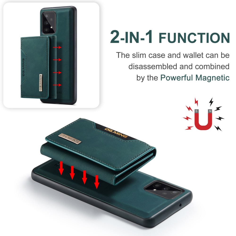 DG MING M2 ŽEPEK ZELEN OVITEK ZA SAMSUNG GALAXY A53 5G Ovitek DG MING M2 je sestavljen iz visokokakovostnega umetnega usnja zadaj in kombinacije trde plastike ter TPU gume na robovih.- Uspešno ščiti vaš telefon pred vsakodnevnimi poškodbami in udarci. - Robovi so dodatno ojačani, kar nudi dodatno zaščito telefona pred poškodbami. - Stranski (funkcijski) gumbi so zaprti in so zato odlična zaščita pred prahom in umazanijo. - Dvignjen rob okrog kamere, da je le-ta zaščitena, ko odložimo telefon na mizo. - Omogoča wireless brezžično polnjenje. Ovitka ni potrebno sneti s telefona. - Na ovitek je z močnim magnetom pritrjena denarnica, kamor v 2 reži lahko shranimo denar in v 6 rež kartice. - Magnetni gumbi skrbijo, da je vsebina denarnice varno shranjena. - Ovitek in denarnico lahko uporabljamo ločeno. - Denarnica se lahko pretvori v stojalo za lažje gledanje videa.Izognite se dragim popravilom in zaščitite vaš telefon! 101243212C 101243212C https://www.etuizamobi.si/media/catalog/product/cache/1/image/9df78eab33525d08d6e5fb8d27136e95/1/0/101243212C_1000x1000_1.jpg