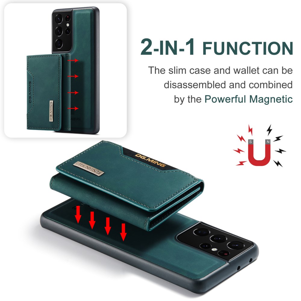 DG MING M2 ŽEPEK ZELEN OVITEK ZA SAMSUNG GALAXY S21 ULTRA Ovitek DG MING M2 je sestavljen iz visokokakovostnega umetnega usnja zadaj in kombinacije trde plastike ter TPU gume na robovih.- Uspešno ščiti vaš telefon pred vsakodnevnimi poškodbami in udarci. - Robovi so dodatno ojačani, kar nudi dodatno zaščito telefona pred poškodbami. - Stranski (funkcijski) gumbi so zaprti in so zato odlična zaščita pred prahom in umazanijo. - Dvignjen rob okrog kamere, da je le-ta zaščitena, ko odložimo telefon na mizo. - Omogoča wireless brezžično polnjenje. Ovitka ni potrebno sneti s telefona. - Na ovitek je z močnim magnetom pritrjena denarnica, kamor v 2 reži lahko shranimo denar in v 6 rež kartice. - Magnetni gumbi skrbijo, da je vsebina denarnice varno shranjena. - Ovitek in denarnico lahko uporabljamo ločeno. - Denarnica se lahko pretvori v stojalo za lažje gledanje videa.Izognite se dragim popravilom in zaščitite vaš telefon! 101237536B 101237536B https://www.etuizamobi.si/media/catalog/product/cache/1/image/9df78eab33525d08d6e5fb8d27136e95/1/0/101237536B_1000x1000_1.jpg