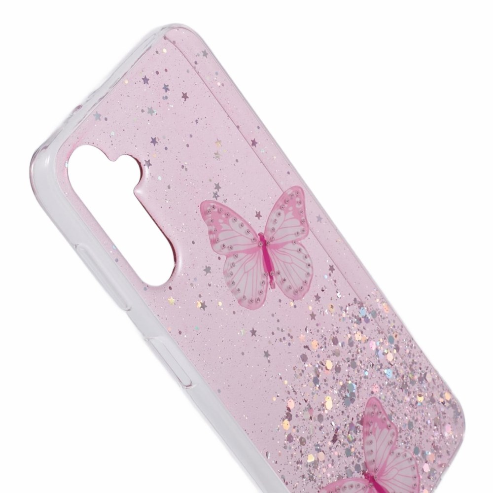 Ovitek GLITTER BUTTERFLY ima bleščeč dizajn z bleščicami in metulji, kar ustvarja lep, privlačen in unikaten videz: