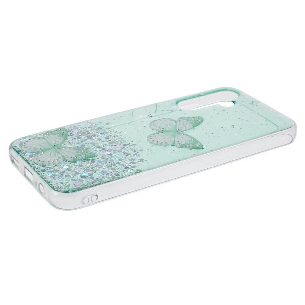 Ovitek GLITTER BUTTERFLY ima bleščeč dizajn z bleščicami in metulji, kar ustvarja lep, privlačen in unikaten videz: