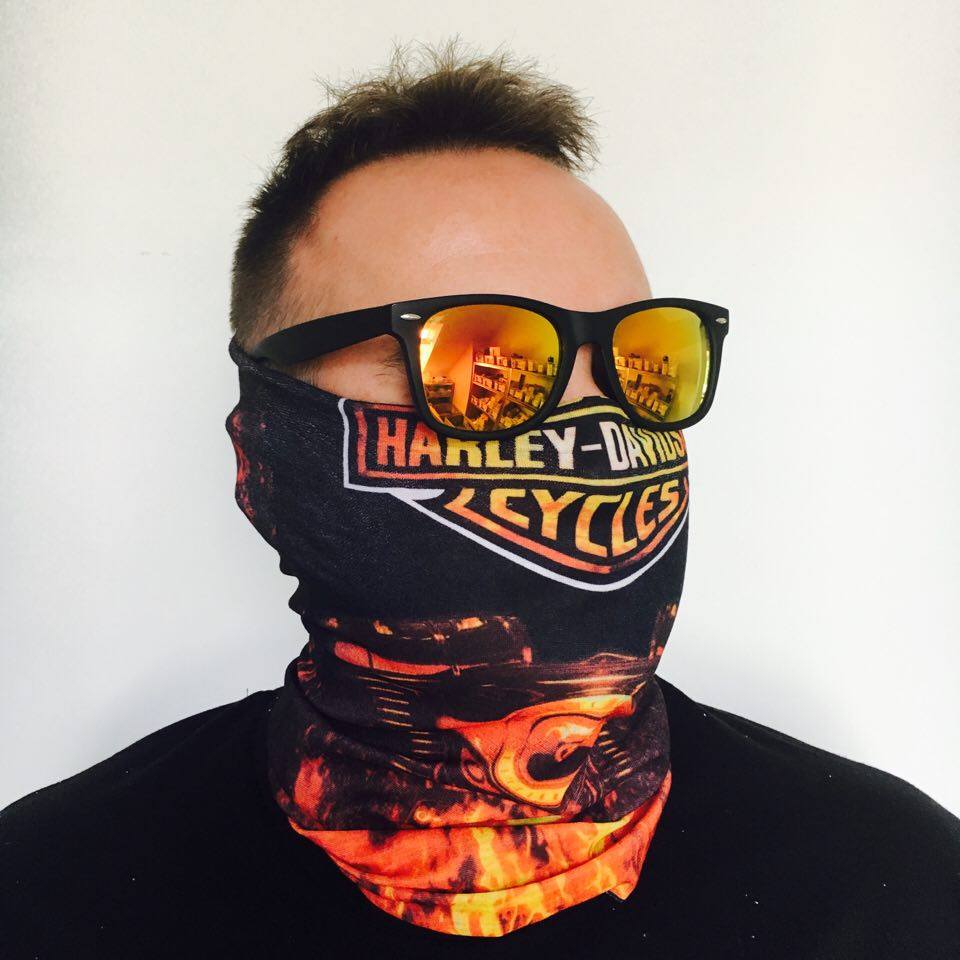 HARLEY DAVISON CYCLES - VEČNAMENSKA RUTA / MASKA Večnamensko ruto ali obrazno masko lahko uporabljaš na več načinov. Je iz tankega, raztegljivega materiala ter univerzalne velikosti.- cca. 47cm x 24cm - zaščita pred vetrom, soncem in drugimi zunanjimi vpivi - pralna na 40° ali manj - 13 načinov nošenja (šal, ruta, maska, kapa, elastika, trak,...) - pestra izbira barv in motivov RUT029 RUT029 https://www.etuizamobi.si/media/catalog/product/cache/1/image/9df78eab33525d08d6e5fb8d27136e95/2/0/20937875_10213605127983316_2128234836_n.jpg