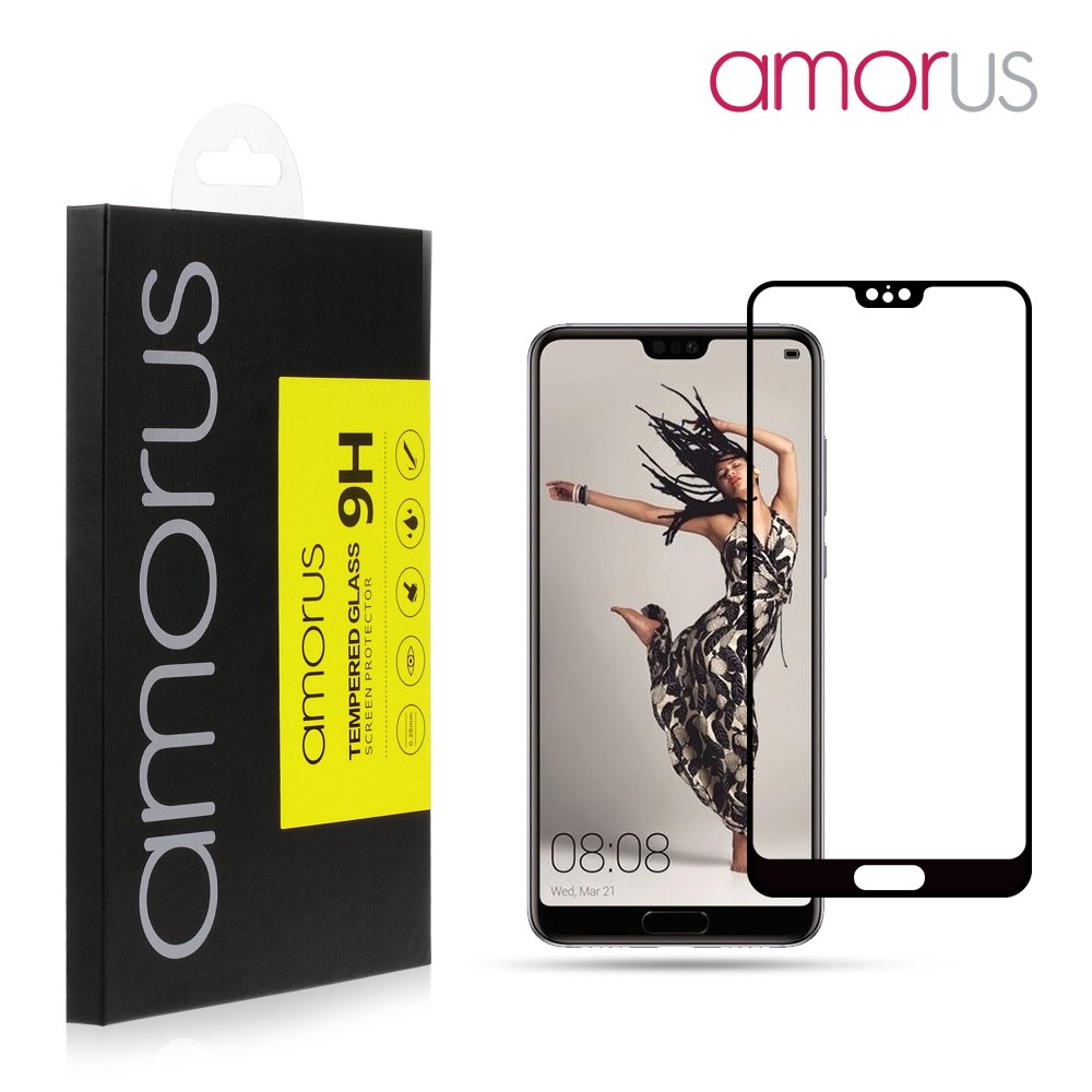 HUAWEI P20 AMORUS FIT KALJENO STEKLO S POTISKOM ČRN - FULL GLUE