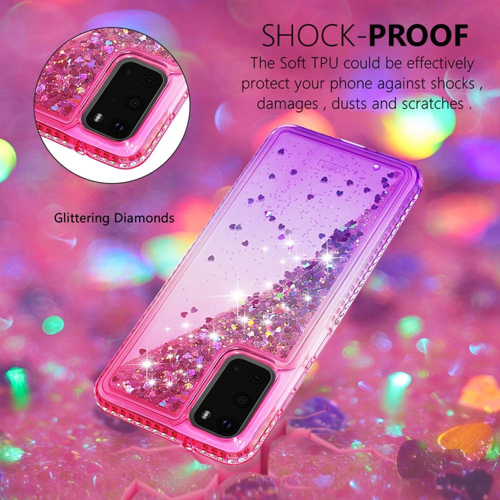 - ima po robovih bleščeče diamantke na zadnji strani pa tekočino kjer se pretakajo bleščice,
