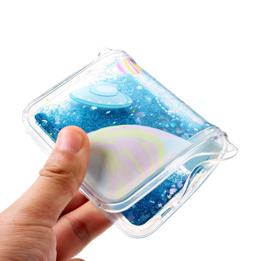 - Na zadnji strani atraktiven potisk in tekočino, kjer se pretakajo bleščice,