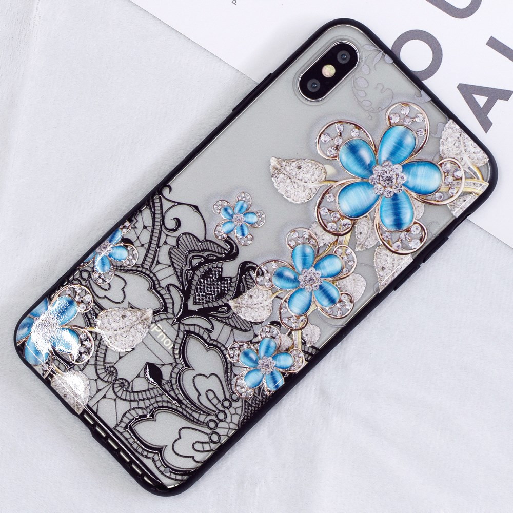 MODRI CVETOVI NA ČIPKI - APPLE IPHONE XS MAX