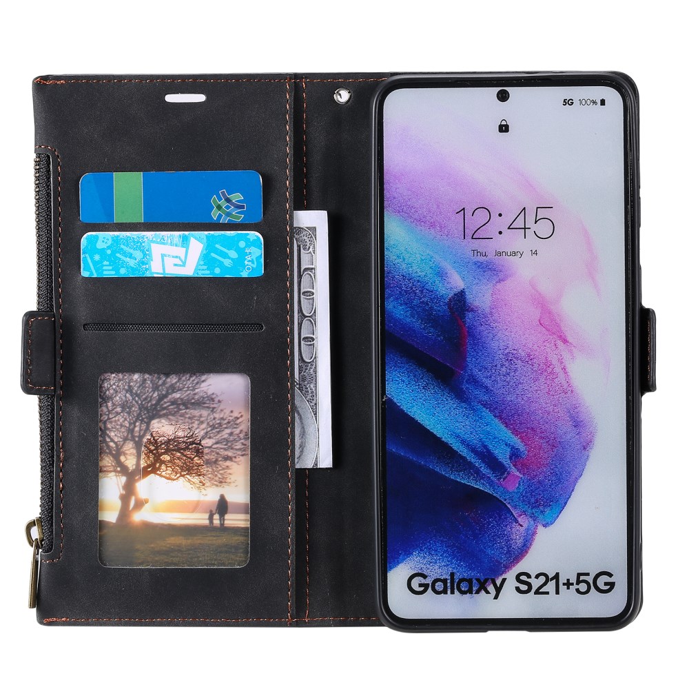MULTI STAND ČRN ETUI ZA SAMSUNG GALAXY S21 PLUS Preklopni etui MULTI STAND je večnamenski, saj vam s svojo prostornostjo in urejenostjo odlično služi tudi kot denarnica.- Je izdelan iz kombinacije visokokakovostnega umetnega usnja in TPU gela, kamor vstavite svoj pametni telefon. - Zagotavlja odlično zaščito pametnemu telefonu pred praskami, padci, udarci,…. - Ima ogromno prostora za shranjevanje kartic in izkaznic. - Vsebuje žep na zadrgo, kamor lahko shranite kovance ali ključe. - Žep za kartice na zadnji strani etuija ima všito magnetno ploščico, ki je kompatibilna z magnetnim stojalom oziroma avto nosilcem (slednji ni vključen). - Zavihek za kartice na zadnji strani, lahko služi kot stojalo in omogoča udoben ogled videoposnetkov. - Priložen je priročen pas, za lažje prenašanje. - Natančni šivi dajejo urejen videz in trajnost etuija. - Stranske tipke so zaprte in varujejo telefon pred vdorom prahu in umazanijo.Izognite se dragim popravilom in zaščitite vaš telefon! 101238057A 101238057A https://www.etuizamobi.si/media/catalog/product/cache/1/image/9df78eab33525d08d6e5fb8d27136e95/1/0/101238057A_1000x1000_1.jpg