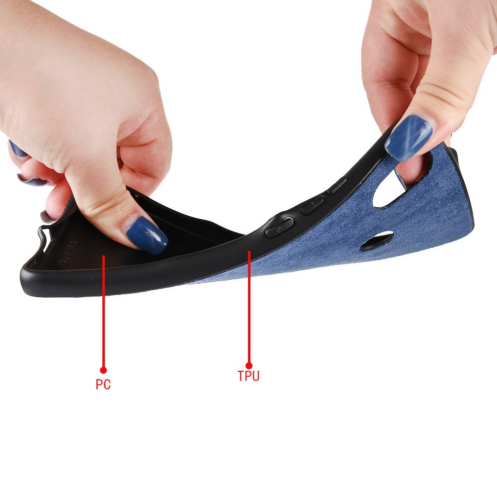 - Po robovih je TPU gel, zadnja notranja stran je iz trše plastike, zadnja zunanja stran pa oblečena v nedrseč žamet.