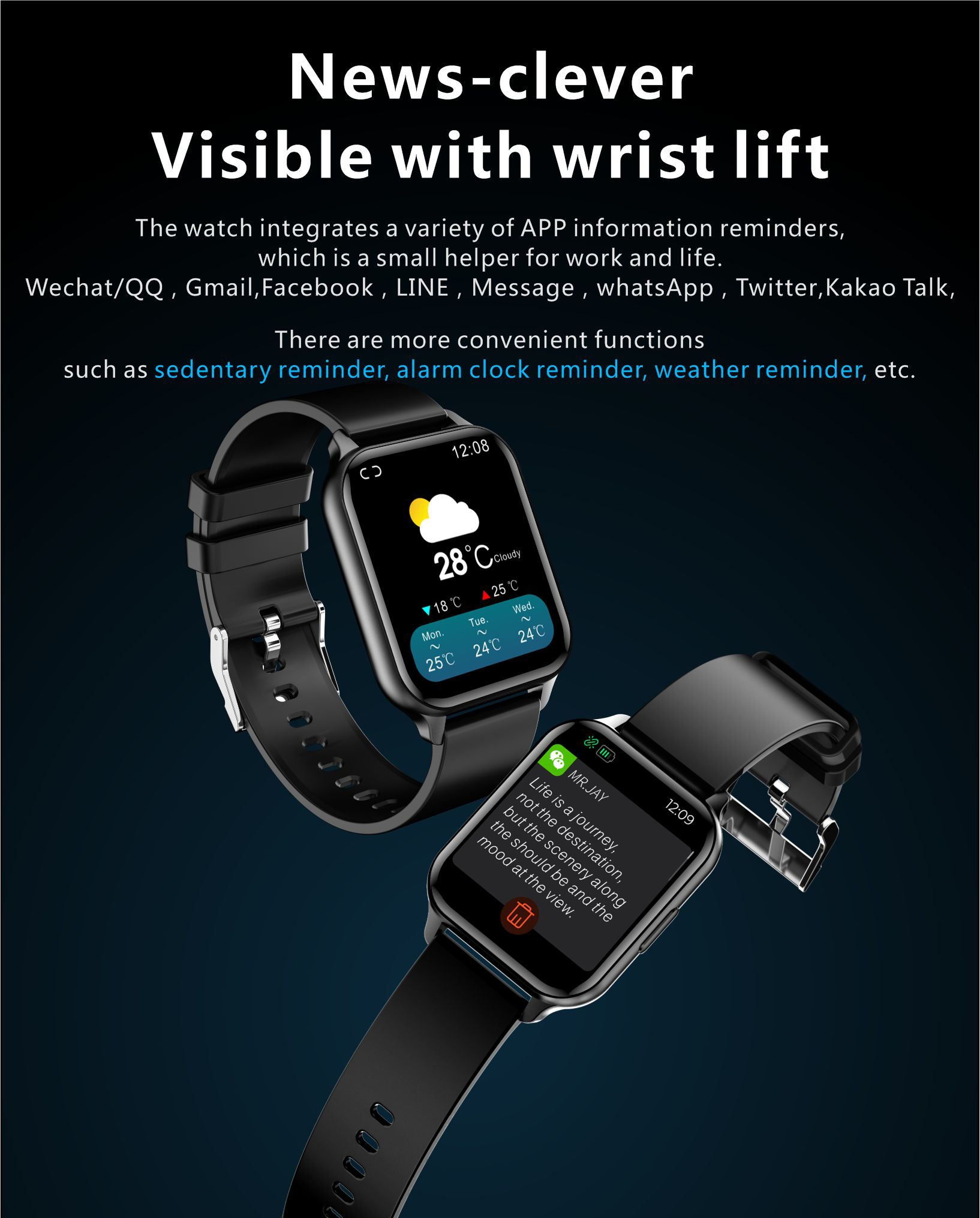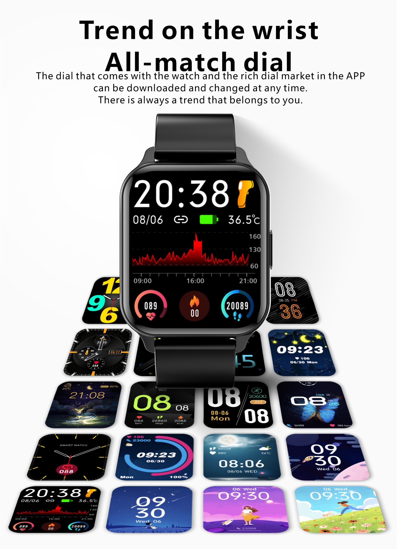 Z uporabo 1,7-palčnega mrežnega zaslona visoke ločljivosti 240 * 280 slikovnih pik je kakovost ekrana odlična in slika jasna, barve so svetle, vidno polje pa bolj naravno.Ohišje ure je narejeno iz lahke magnezijeve zlitine, pašček pa iz mehkega, udobnega silikona.Z uporabo zelo občutljivega termistorja ura zaznava tudi majhne temperaturne spremembe in pravočasno javlja povratne informacije o stanju telesne temperature.Merjenje kisika v krvi v realnem času skozi uro nam pomaga, da pravilno razumemo telesno kondicijo in s tem nadaljnje preprečevanje znižanega vnosa kisika.24-urno neprekinjeno spremljanje srčnega utripa, ki ga vedno lahko preverite tudi v aplikaciji na telefonu.Specifikacije: Zaslon: 1,7-palčni TFT z visoko ločljivostjo, 240 * 280 slikovnih pik CPU: Realtek8762c Dotik: celozaslonski dotik Bluetooth: BLE5.0 Senzor srčnega utripa: VC31 + NTC G-senzor: STK8321 Baterija: 180 mAh polimerne baterije velike kapacitete Sistemska podpora: Andrews 4.4 in novejše in IOS 9.0 in novejšeFunkcije ure: merilec srčnega utripa, merilnik krvnega tlaka, osnovni monitoring za saturacijo s kisikom, prikaz časa, standardne motorične funkcije (koraki, razdalja, kalorije), nadzor spanja, obvestilo o klicu, opomniki, besedilo, iskanje telefona, nadzor telesne temperature, prilagoditev svetlost, več športnih načinov: 24 vrst, vreme, svetilka, budilka, glasbeni nadzor, vsestranska številčnica, ozadje za klicanje, način ne moti.Za ozadje ure si lahko nastavite svojo fotografijo.Material enote ure: lahka zlitina Material zapestnega traku: silikagelVelikost enote: 36,6 * 43 * 8,8 mm Dolžina zapestnega traku: 248 mmVodoodporen nivo: IP68Komplet vsebuje: 1 x pametno uro v izbrani barvi 1 x originalni angleški uporabniški priročnik 1 x osnovna navodila za uporabo v slovenščiniGarancija: 1 leto 680500755A 680500755A https://www.etuizamobi.si/media/catalog/product/cache/1/image/9df78eab33525d08d6e5fb8d27136e95/6/8/680500755A_1000x1000_1.jpg