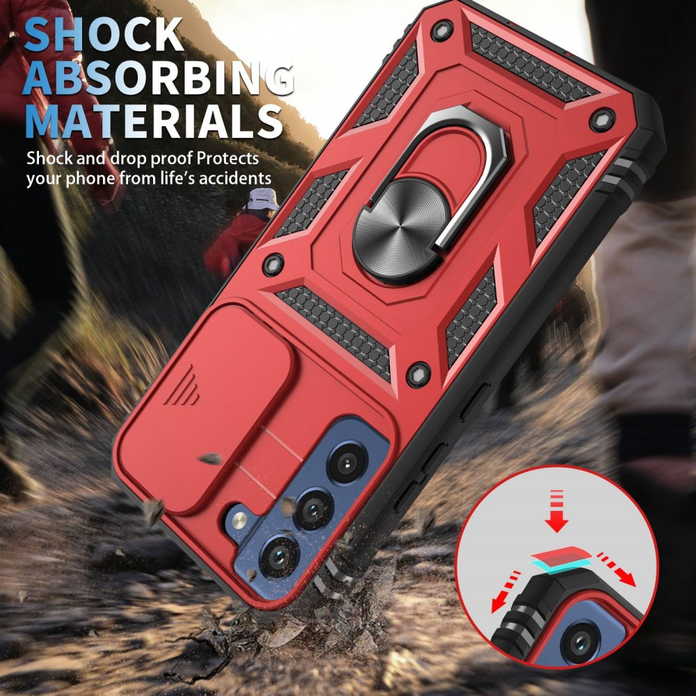 REX CAP RDEČ OVITEK ZA SAMSUNG GALAXY S21 FE Ovitek REX CAP je odlična zaščita za vaš telefon, saj je:- Odporen, trden in ekstremen hybrid ovitek z vgrajenim stojalom. - Ščiti telefon pred udarci in praskami. - Kombinacija zunanje trdne plastike in notranjega dela iz TPU gume poskrbi, da je telefon zaščiten tudi v ekstremnih pogojih. - Dvignjen rob okrog kamere, da je le-ta zaščitena, ko odložimo telefon na mizo. - Pokrov za zadnjo kamero dodatno zaščiti vašo kamero, ko je ne uporabljate. - Kovinsko držalo na zadnji strani omogoča bolj varno uporabo telefona in stojalo za prostoročen ogled videoposnetkov kjerkoli in kadarkoli. Lahko ga pritrdimo tudi na avto-nosilec. - Omogoča dober oprijem in ohranja funkcionalnost telefona. - Je pripravljen za ekstremne razmere in se tesno prilega telefonu.Izognite se dragim popravilom in zaščitite vaš telefon! 660118470E 660118470E https://www.etuizamobi.si/media/catalog/product/cache/1/image/9df78eab33525d08d6e5fb8d27136e95/6/6/660118470E_1000x1000_1.jpg.jpg