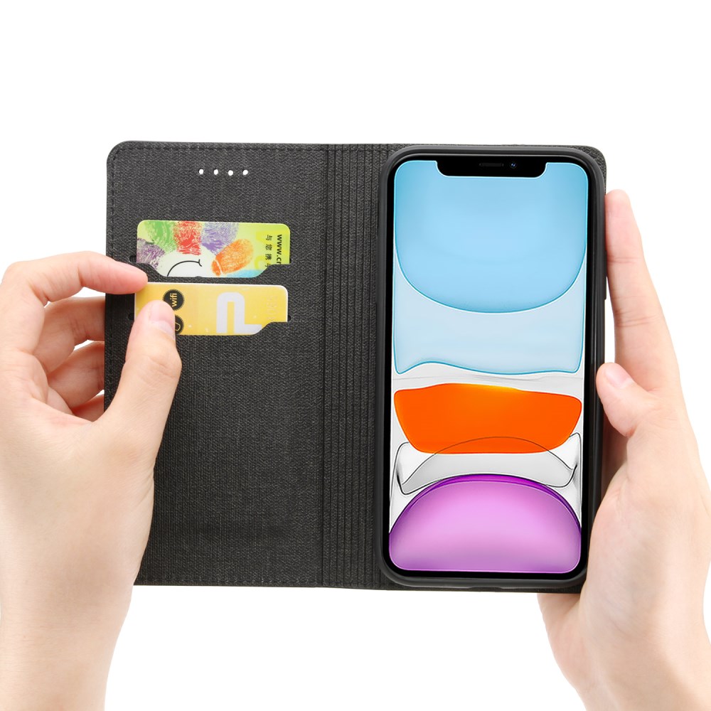 Ta etui ima preprost poslovni slog in vitko konstrukcijo. Kvalitetno izbrano umetno usnje s teksturo jeans-a zunaj in znotraj je gladko kot koža in se ga umazanija je prime. Zložljivo stojalo podpira vaš telefon v udobnem vidnem kotu, zaradi česar je gledanje videa bolj prijetno. Naj bo vaša glavna kartica na dosegu roke. Vgrajen magnet za avtomatsko zapiranje, varen in udoben.