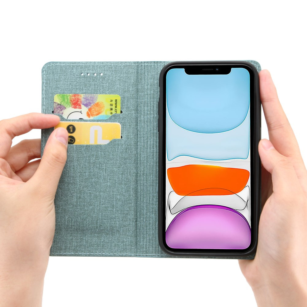 Ta etui ima preprost poslovni slog in vitko konstrukcijo. Kvalitetno izbrano umetno usnje s teksturo jeans-a zunaj in znotraj je gladko kot koža in se ga umazanija je prime. Zložljivo stojalo podpira vaš telefon v udobnem vidnem kotu, zaradi česar je gledanje videa bolj prijetno. Naj bo vaša glavna kartica na dosegu roke. Vgrajen magnet za avtomatsko zapiranje, varen in udoben.