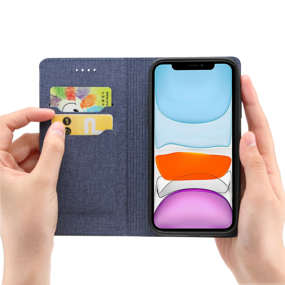 Ta etui ima preprost poslovni slog in vitko konstrukcijo. Kvalitetno izbrano umetno usnje s teksturo jeans-a zunaj in znotraj je gladko kot koža in se ga umazanija je prime. Zložljivo stojalo podpira vaš telefon v udobnem vidnem kotu, zaradi česar je gledanje videa bolj prijetno. Naj bo vaša glavna kartica na dosegu roke. Vgrajen magnet za avtomatsko zapiranje, varen in udoben.