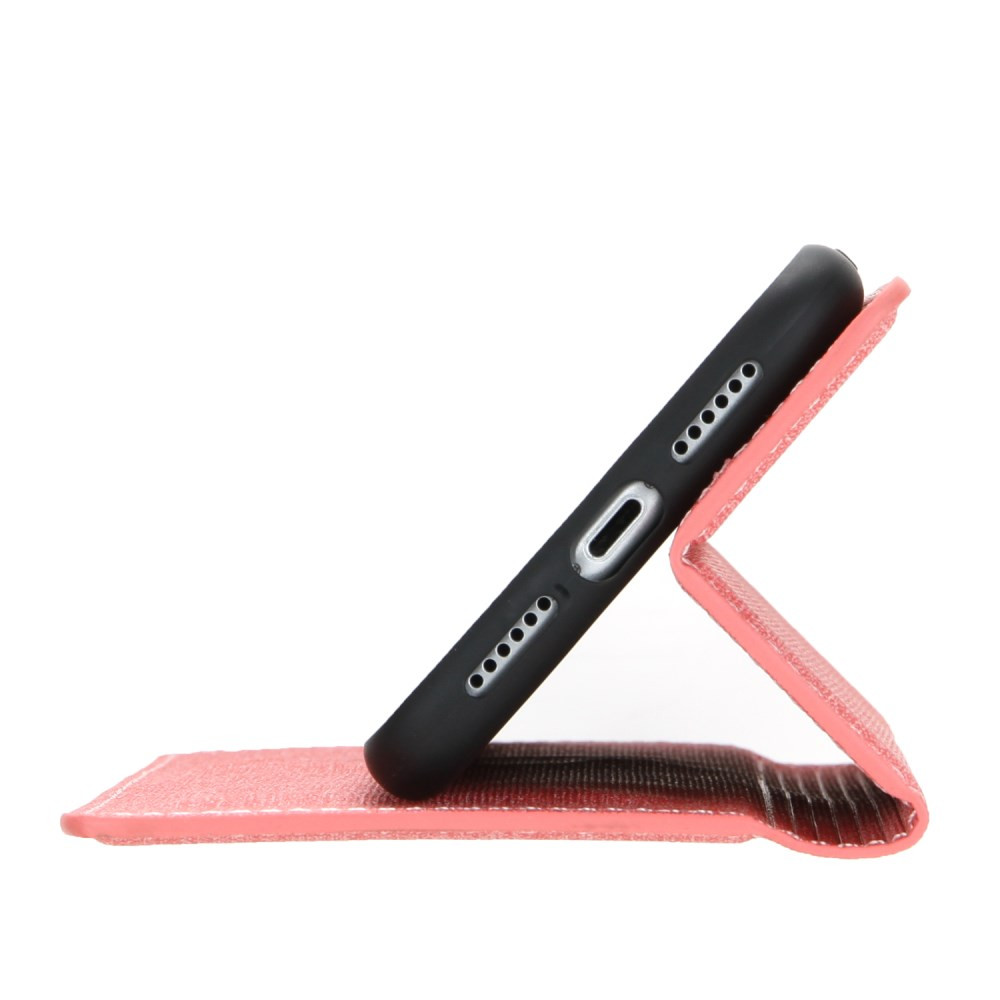 Ta etui ima preprost poslovni slog in vitko konstrukcijo. Kvalitetno izbrano umetno usnje s teksturo jeans-a zunaj in znotraj je gladko kot koža in se ga umazanija je prime. Zložljivo stojalo podpira vaš telefon v udobnem vidnem kotu, zaradi česar je gledanje videa bolj prijetno. Naj bo vaša glavna kartica na dosegu roke. Vgrajen magnet za avtomatsko zapiranje, varen in udoben.
