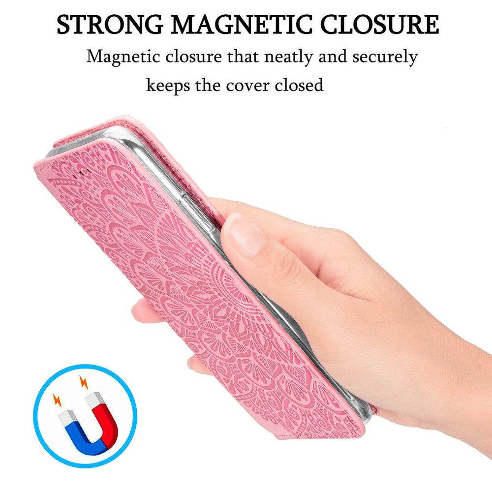 3 V 1! Usnjen etui SLIM MANDALA ima znotraj ohišje iz upogljivega TPU gela, kamor vstaviš telefon. Uporabljaš ga lahko na več načinov: