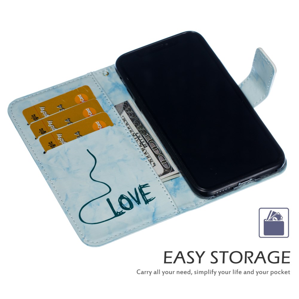 3 V 1! Usnjen etui s potiskom marmorja ima znotraj ohišje iz upogljivega TPU gela, kamor vstaviš telefon. Uporabljaš ga lahko na več načinov. Izdelan je tako, da ščiti telefon pred udarci, pregib lahko uporabljaš za udoben ogled videa. Etui lahko služi tudi namesto denarnice.