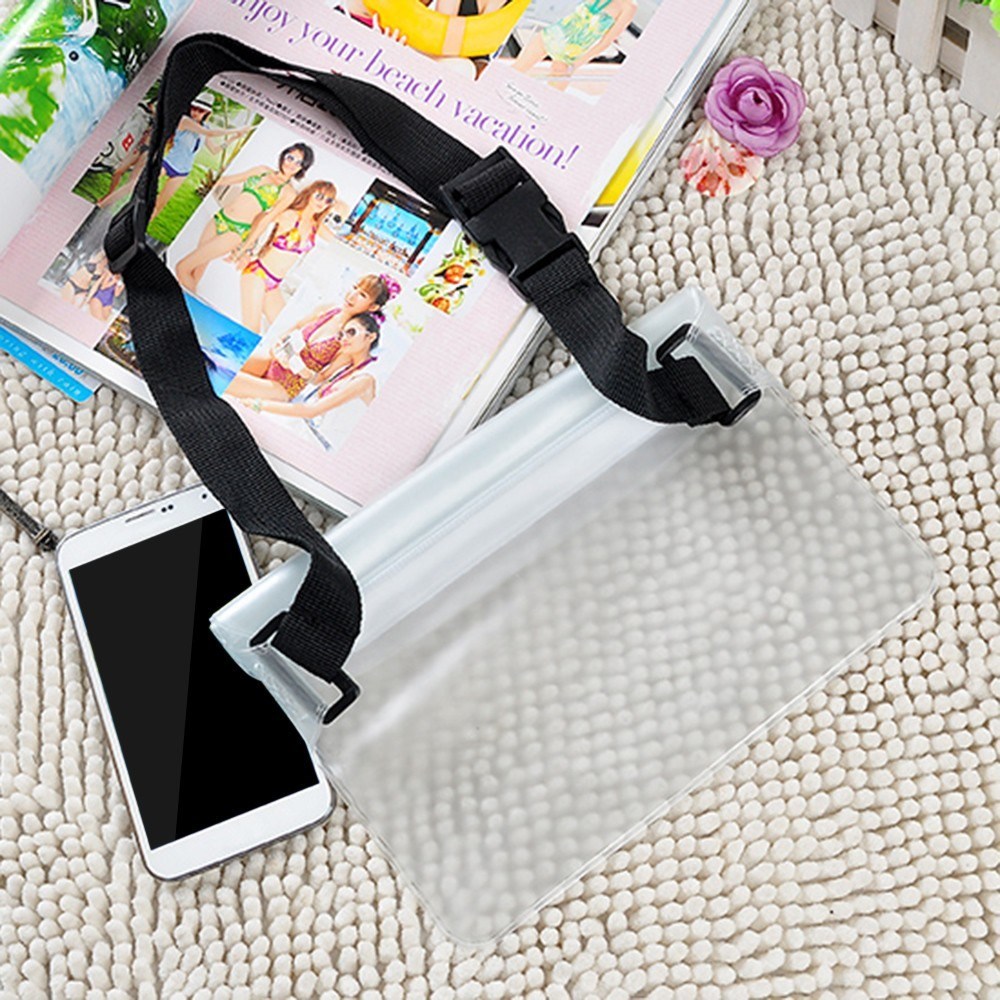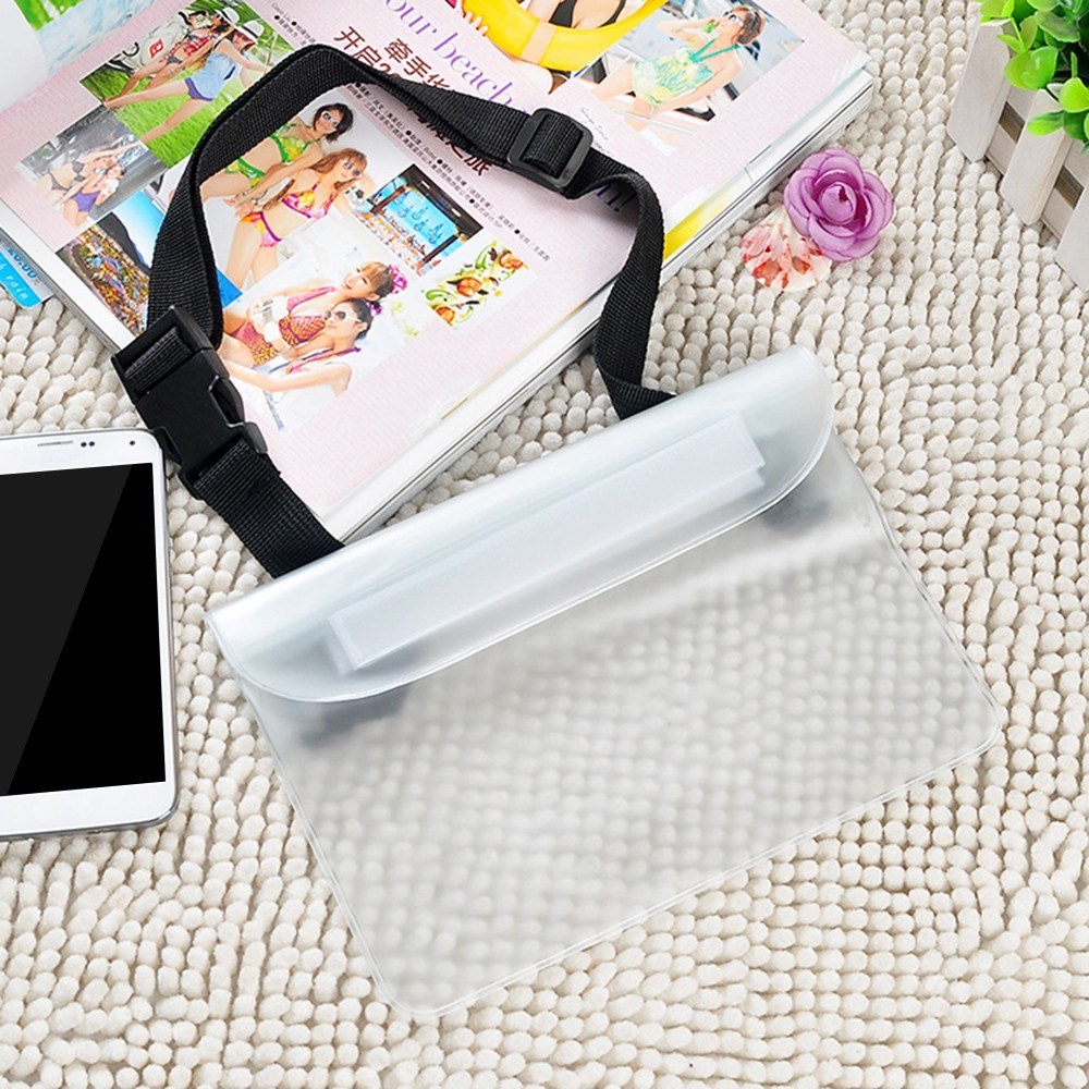 - Pred uporabo priporočamo test v vodi brez naprave, da se preveri vodotesnost, kljub temu, da je artikel pred pošiljanjem preverjen. Preverite tako, da v etui vstavite papirnati robček, etui zaprete in ga potopite v vodo. Po nekaj minutah preverite, robček mora ostati suh.