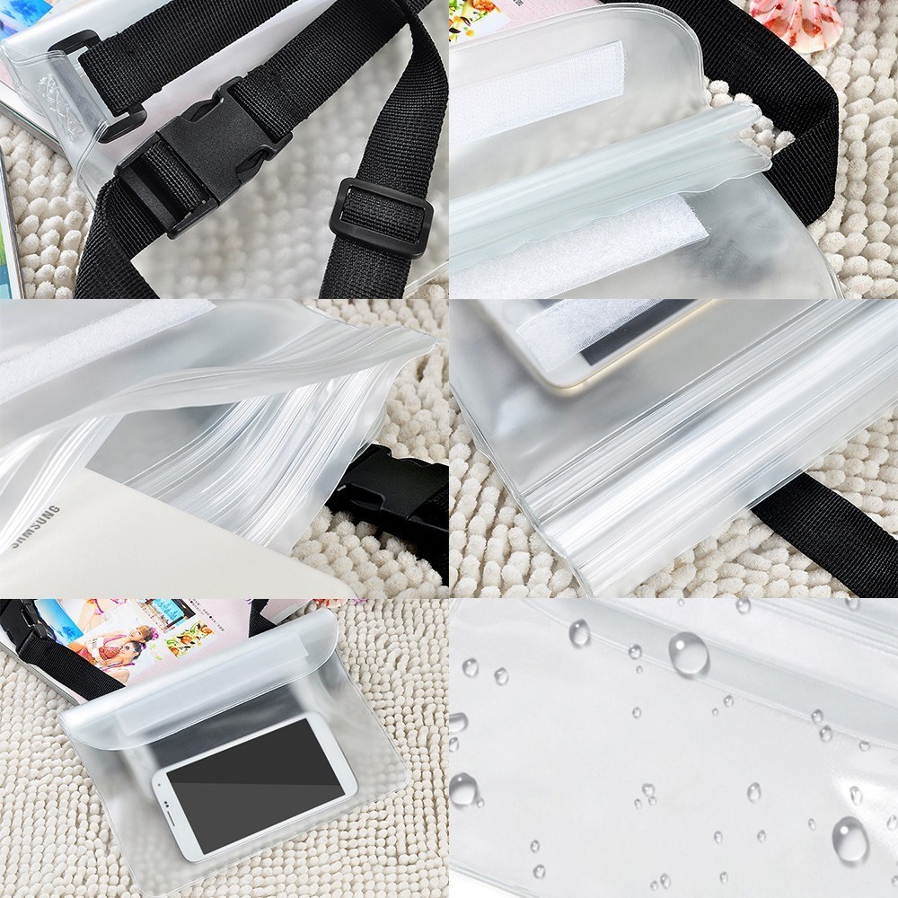 - Pred uporabo priporočamo test v vodi brez naprave, da se preveri vodotesnost, kljub temu, da je artikel pred pošiljanjem preverjen. Preverite tako, da v etui vstavite papirnati robček, etui zaprete in ga potopite v vodo. Po nekaj minutah preverite, robček mora ostati suh.