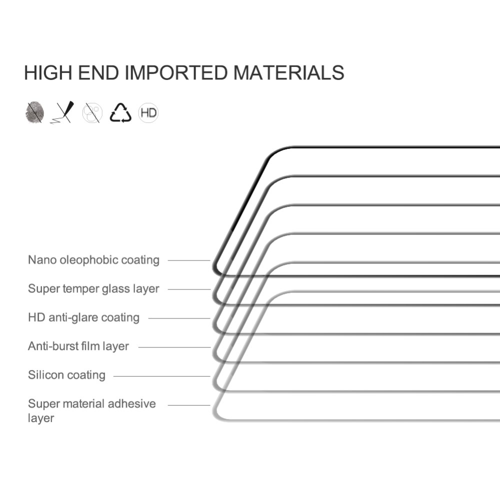 Izdelano iz visoko kakovostnega stekla AGC z lepilom po celotni površini in odlično odzivnostjo. Trdota je do 9H, super anti-scratch in zelo odporen na obrabo. 3D ukrivljen robni dizajn omogoča popolno pokritost zaslona in popolno zaščito.